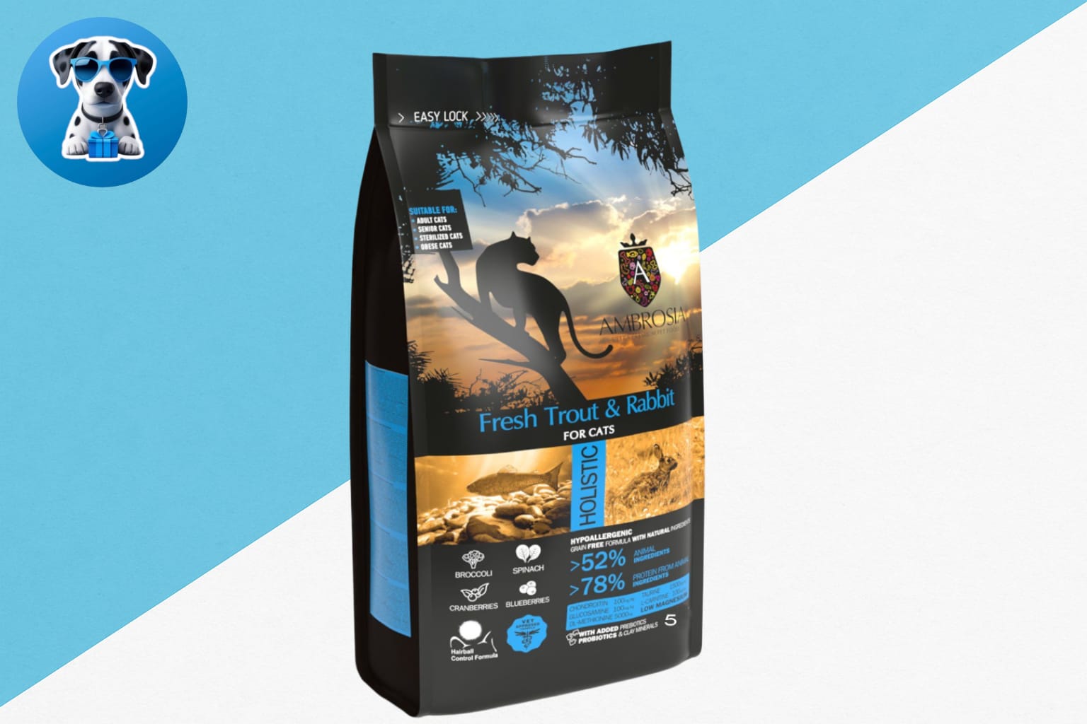 אמברוסיה 5 ק"ג חתול מעוקר דג וארנבת כחול