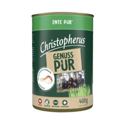 מעדן פטה איכותי מבית Christopherus בטעם בשר ברווז – מתאים לכלבים כולל רגישים לגלוטן., בעל מרקם רך ונעים, מושלם כתוספת טעימה לארוחה או כמזון מלא 🐶