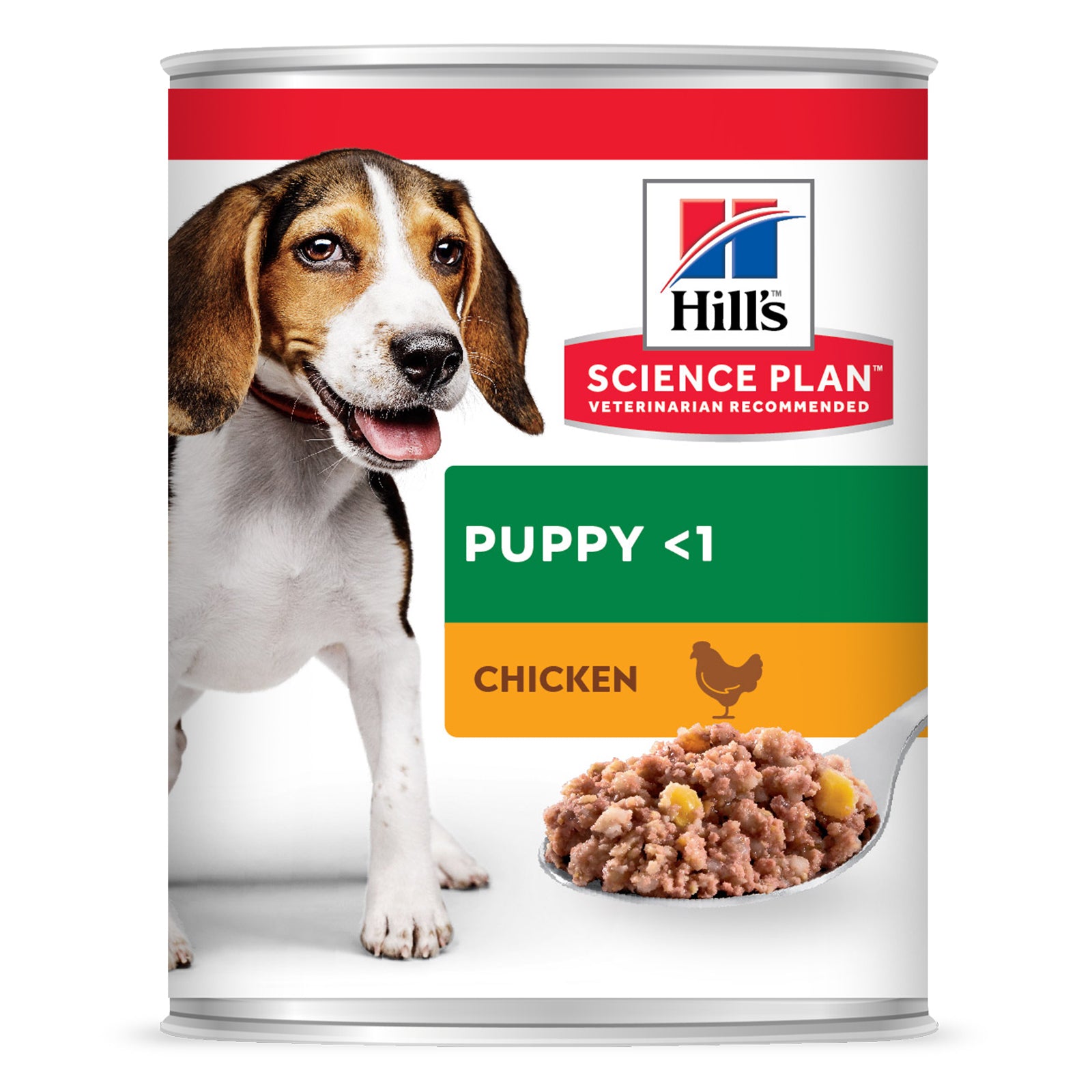 גור הכלבים שלכם יאהב את הטעם של שימורי Hill's Science Plan לגור כלב (עם עוף) במרקם רך וחלק.