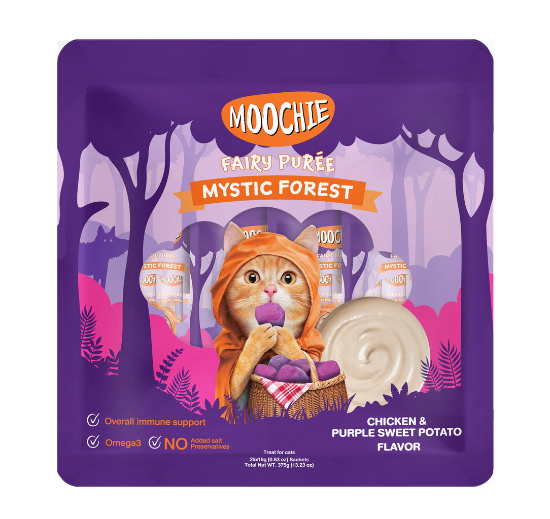 שלוקים מוצ'י לחתול עוף ובטטה סגולה 5 יח*15 גר' מזון משלים לחתולים מגיל חודשיים (שימורים)